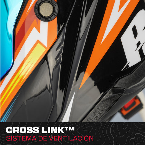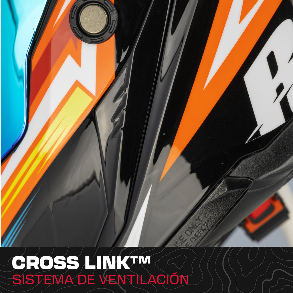Su sistema de ventilación Cross Link regulable optimiza el flujo de aire, mientras que la mentonera de cortina integrada y el sistema Air Lock™ de cierre a presión reducen el impacto del viento para mayor estabilidad
